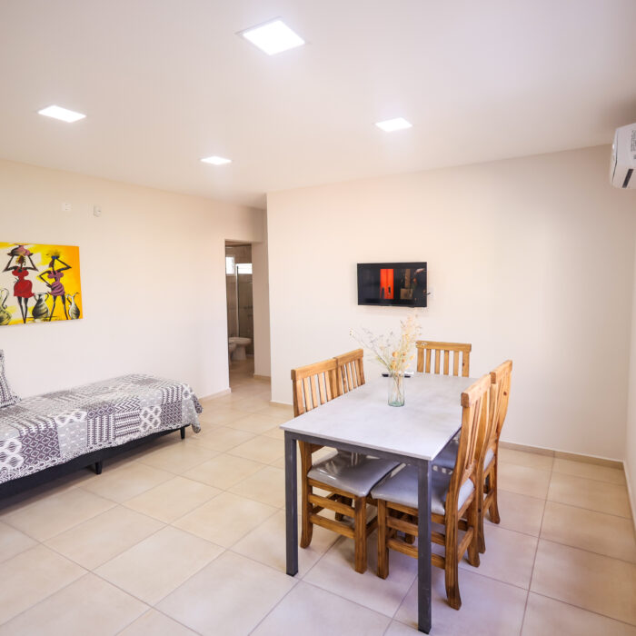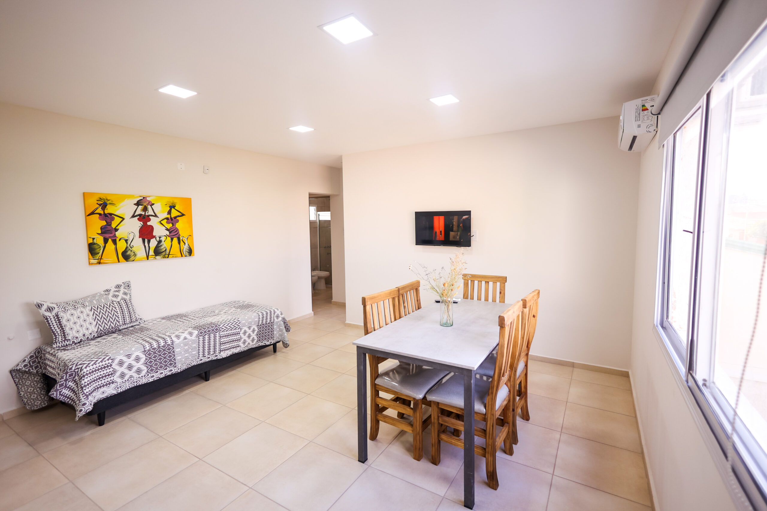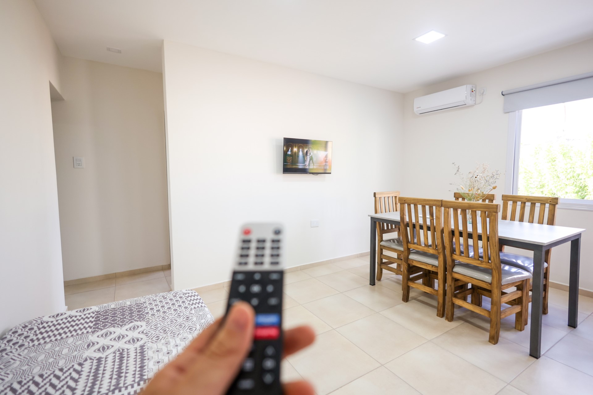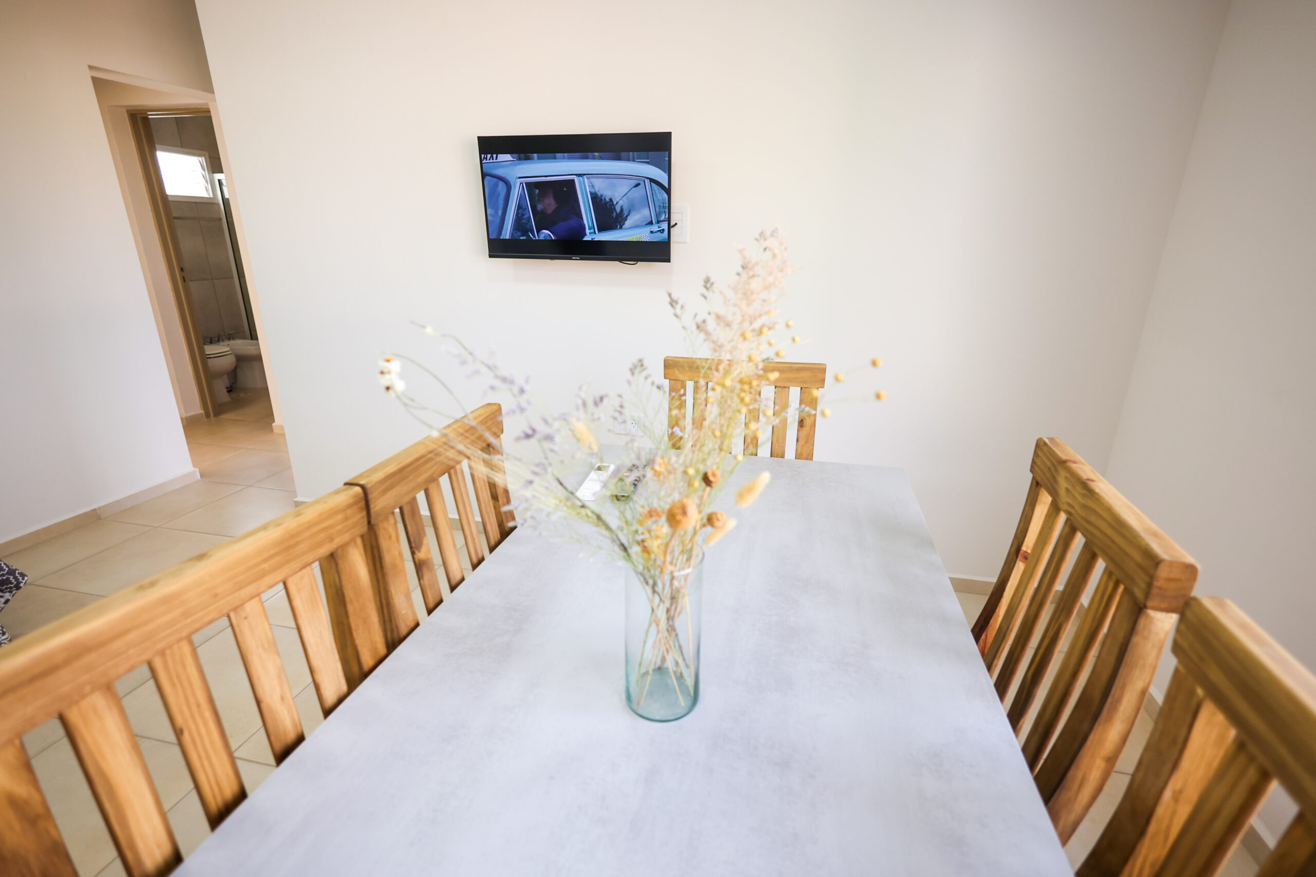 Departamentos totalmente equipados para un máximo de cinco personas, con vajilla completa, servicio de ropa de blanco (toallas, toallones y sábanas), Televisión Smart Tv , Cable, WiFi, Cochera, Piscina y Parrilla.